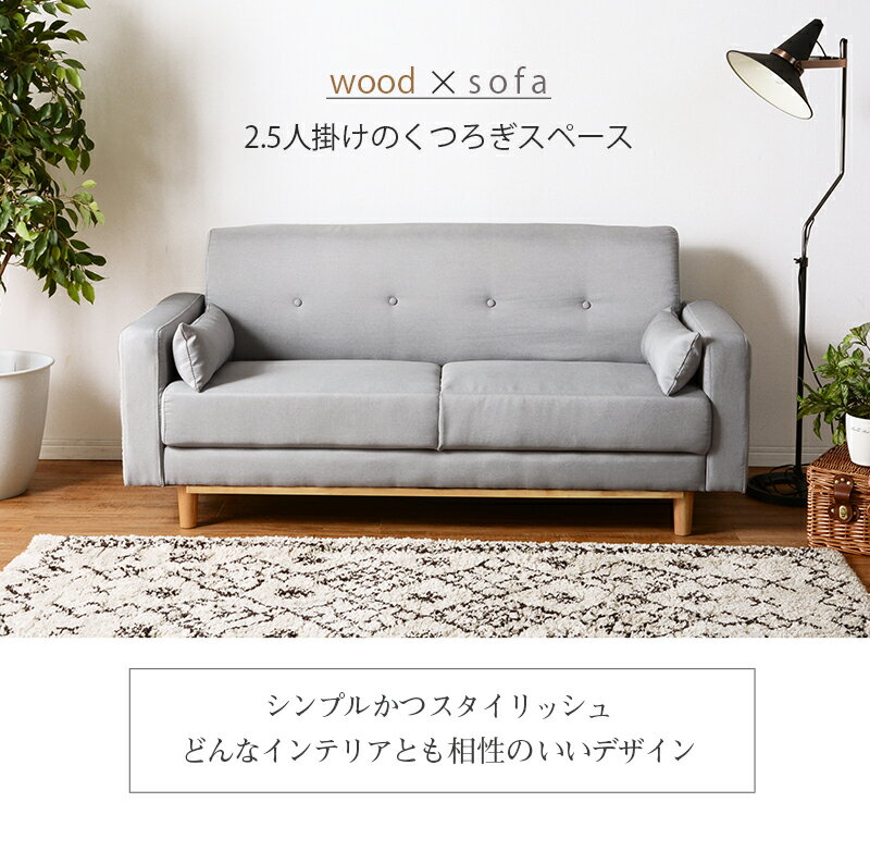 ソファー 3人掛け グレー 北欧デザイン木肘ソファ【Lulea】ルレオ